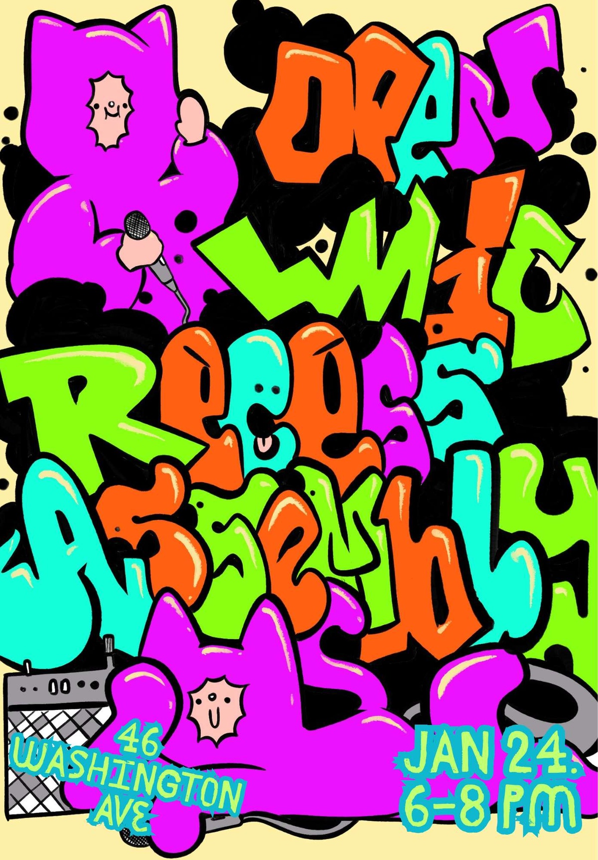 Recess Assembly invites performers and listeners alike to our firrst Open Mic of the year—an evening for emerging voices, new sounds, and experimental art.